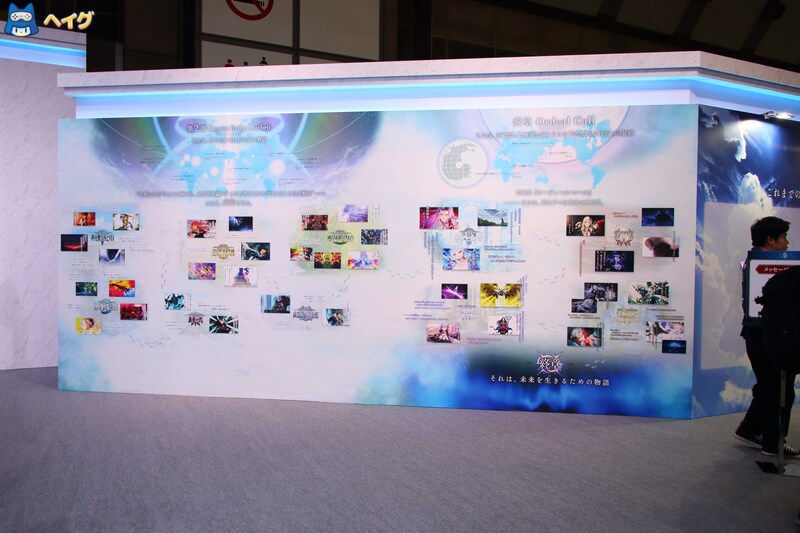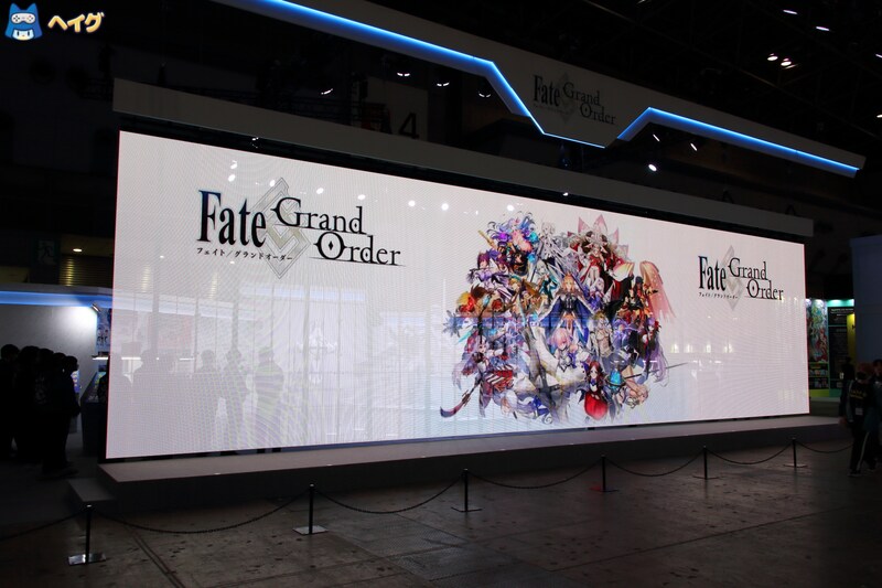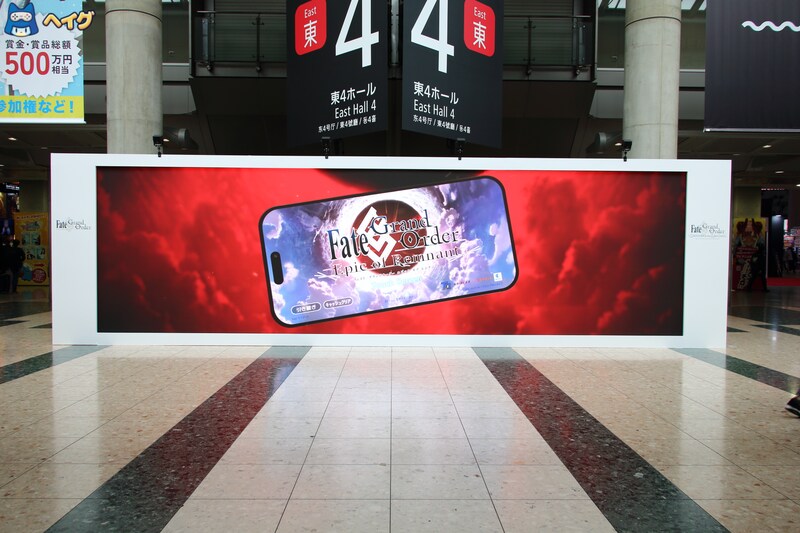 今年の『Fate/Grand Order』ブースでは、正面の大型透過型ビジョンが来場者を出迎えました。また、東4ブース入口にも大型ビジョンが設置され、これまでの物語を振り返る特別ムービーが放映されました。