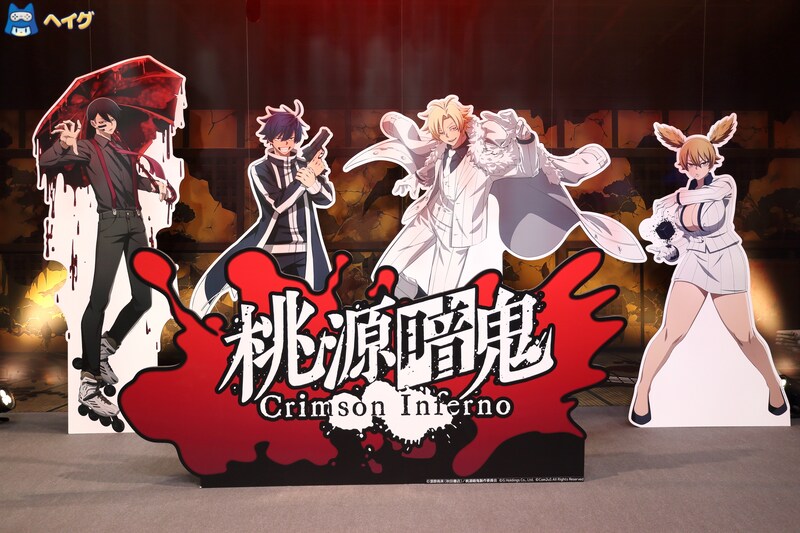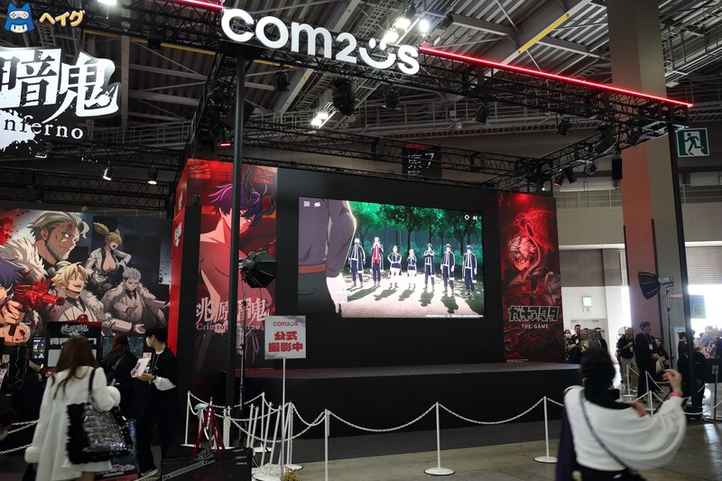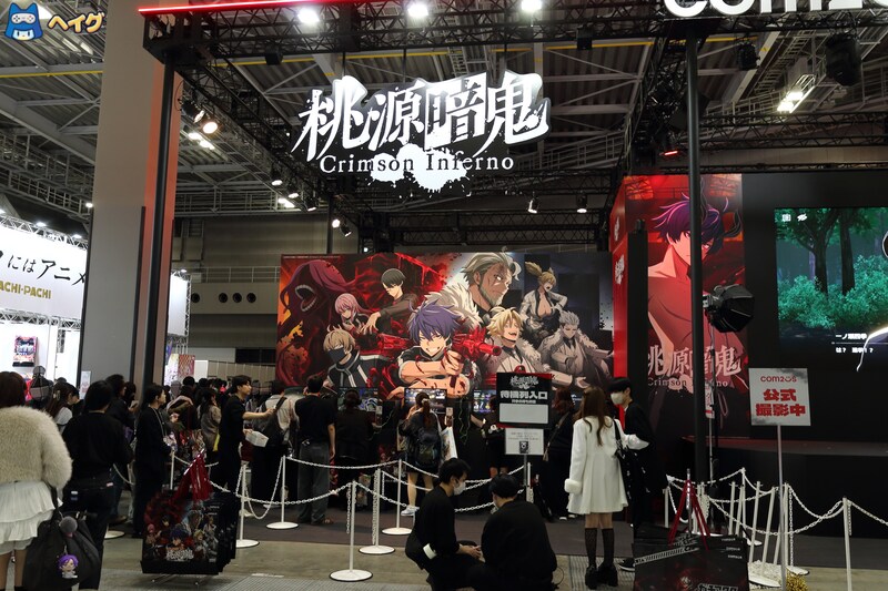 「Com2uS」ブースでは、TVアニメ「桃源暗鬼」の公式ゲーム『桃源暗鬼 Crimson Inferno』と、TVアニメ「ガチアクタ」を元にしたサバイバルアクションRPG『ガチアクタ The Game』を中心とした展示が実施されました。このうち、『桃源暗鬼 Crimson Inferno』は試遊が行われ、多くの来場者が体験していました。