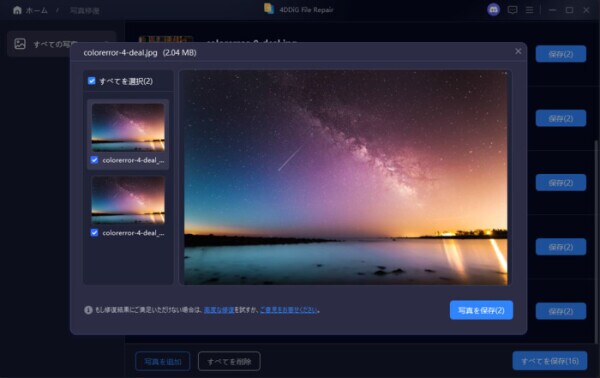 2.「すべてを修復」ボタンをクリックすると、プログラムは自動的に写真を修復します。