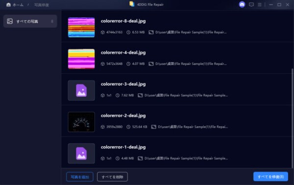 中でもおすすめなのが「4DDiG File Repair」です。破損した写真の修復だけでなく、簡単な操作で画質を向上させたり解像度を補完したりする機能も備えており、使いやすさの点でも優れています。ぜひ自分の大切な画像修復に活用してみてください。