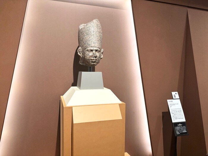 王の名前は不明とされていますが、最も古いとされる、エジプト王の巨像の一部。ギザの大ピラミッドを建造させたクフ王ではないかと推察されています。