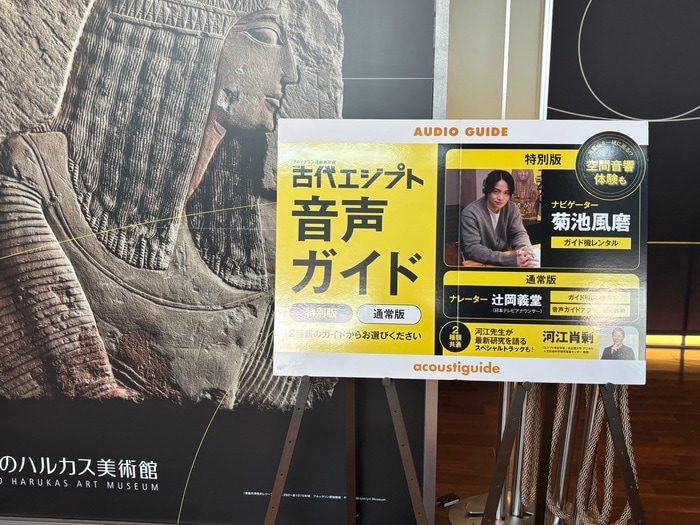 音声ガイドは2種類あり、「特別版」のナビゲーターは菊池風磨さん。貸出料金 750円(税込)で、古代エジプトの謎を菊池さんと探求する体験を会場でお楽しみいただけます。
