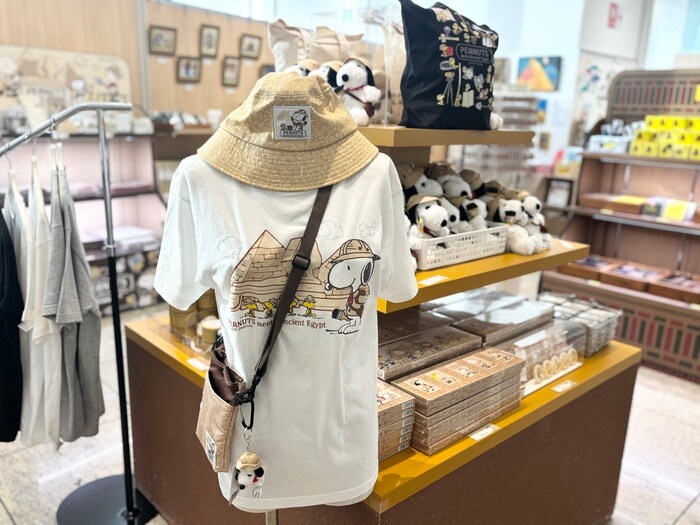 会場のみでしか手に入らない、PEANUTSとコラボレーション商品!スヌーピーやウッドストックなど ピーナッツの仲間たちがエジプト展のならではの特別なビジュアルで登場。