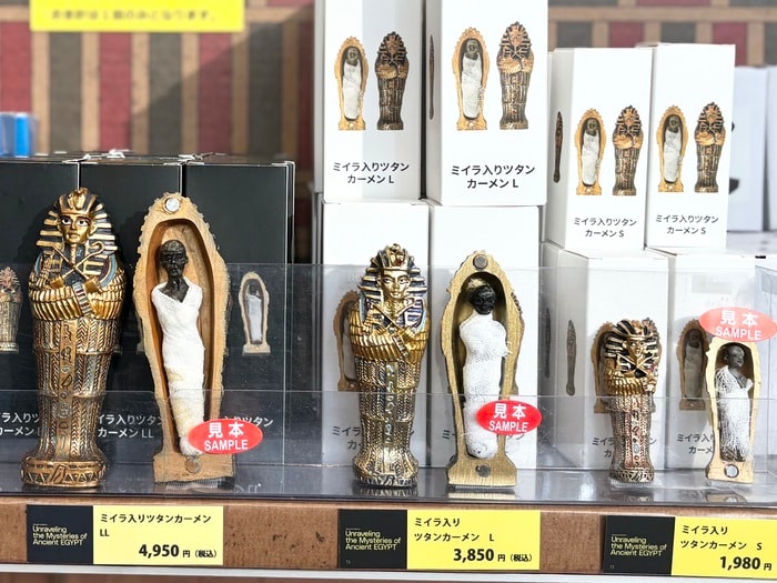 お土産にもミイラに関するアイテムがたくさん並んでおり、目を惹いたのが「ミイラ入りツタンカーメン」。