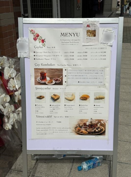 今回オーダーしたのは、お店で一番人気というアゼルバイジャン紅茶「ベルガモット」と、お茶のお供にぴったりな伝統フード「ミートクレープ」、伝統スイーツの「ムタキ」です。