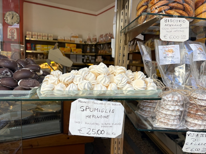 メリンガは、砂糖と卵白だけで作るシンプルなもので、Pasticceria(パスティッチェリア)=お菓子・ケーキ屋さんや、スーパーに並んでいます。