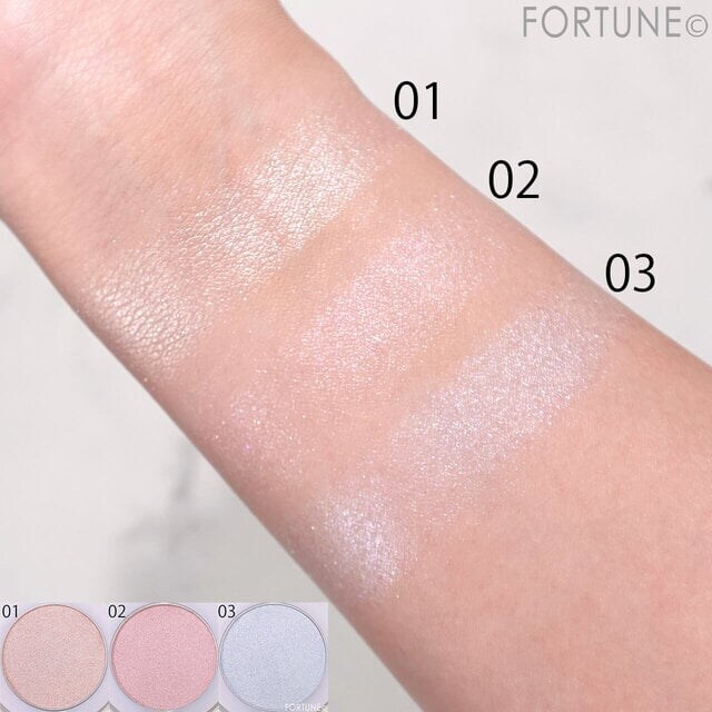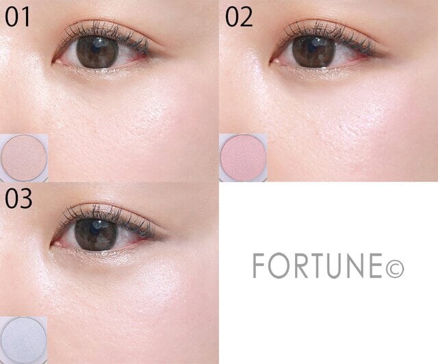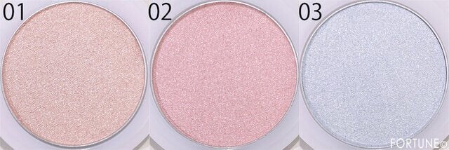 各カラーをチェックしてみると、「01」はややゴールド寄りに発光し、肌になじみながら華やかなツヤをプラス。
