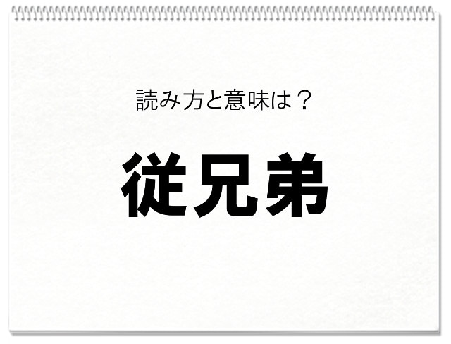 親の兄弟姉妹の息子。娘の場合は従姉妹としたり、年齢と性別で従兄、従弟、従姉、従妹と書き分けることもあります。
