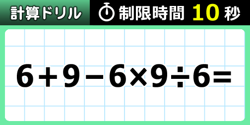 【問題】うっかりすると間違えちゃうかも?!「6+9-6×9÷6」ちゃんと間違えずに正解できるかな?【制限時間は10秒】