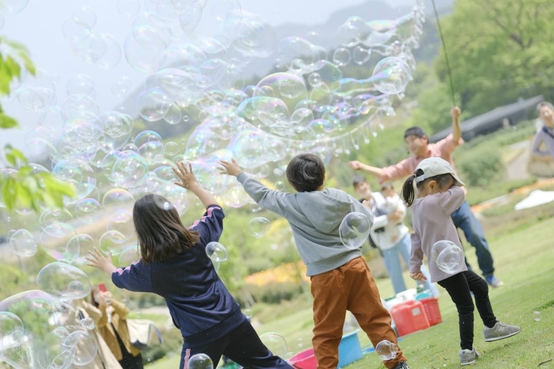 たとえば、開放的な空間で動物たちと触れ合える移動動物園や、空いっぱいに広がるシャボン玉のショー。目の前で繰り広げられる大道芸のパフォーマンスは、子どもはもちろん、大人も思わず足を止めてしまうような時間をつくります。