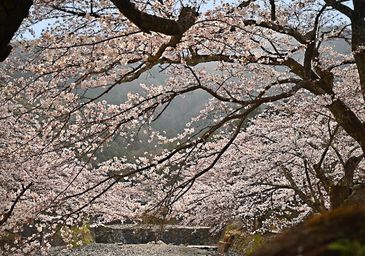 京都駅から快速電車で約20分のところにある亀岡市。毎年春になると、七谷川周辺で約1kmにわたり30品種・約1,500本の桜が咲き誇ります。「和らぎの道」や「南郷公園」、「亀岡運動公園」犬飼川沿いなど、市内全域が華やかなピンク色に染まる姿は圧巻です!
