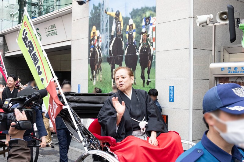 2026年4月3日(金)から大阪松竹座さよなら公演「御名残四月大歌舞伎」を上演する大阪松竹座。その公演前となる3月29日(日)に「大阪松竹座 御名残道頓堀お練り」を実施。東西の豪華出演者たちが、道頓堀を人力車でお練りしたあと、劇場前で挨拶を行いました。