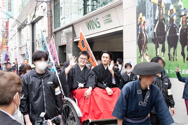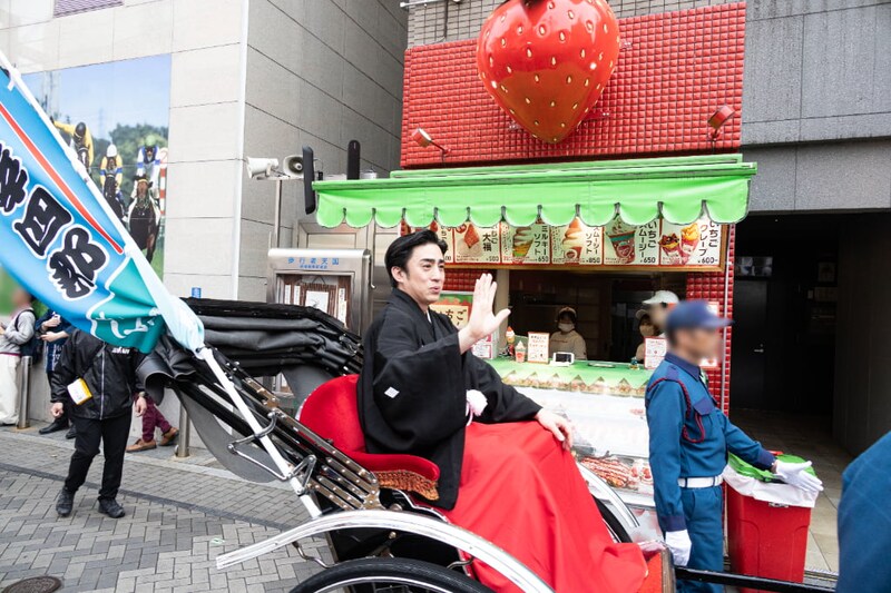 今回のお練りに参加したのは、4月公演に出演する歌舞伎俳優たち。