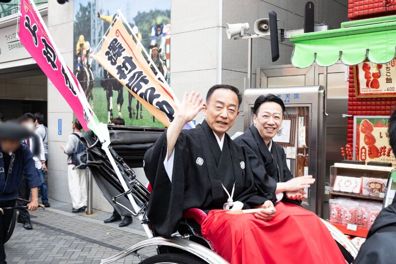 片岡仁左衛門、中村歌六、中村鴈治郎、中村扇雀、片岡進之介、片岡孝太郎、松本幸四郎、中村獅童、中村壱太郎、大谷廣太郎、中村隼人、中村虎之介、中村陽喜、市川高麗蔵、市川門之助、中村亀鶴、松本錦吾、上村吉弥、澤村宗之助、片岡松之助、澤村精四郎という錚々たるメンバーが、堺筋から大阪松竹座までの約700mを人力車でお練りします。