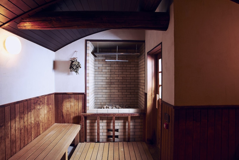 スキーのメンテナンス後は、体もしっかりケアしたい。広々としたお風呂に、オートロウリュとセルフロウリュ、お好みでどちらのスタイルも楽しめるサウナを完備。