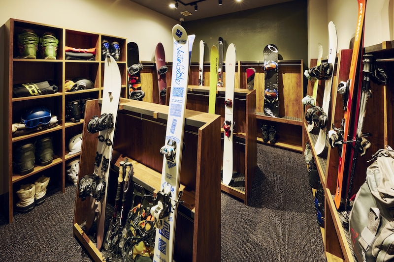 濡れたギアやメンテナンス後の道具を乾燥・保管できるスキー乾燥室。スキーにワックスをしっかり浸透させるには、板を乾かし温める工程が欠かせない。乾燥室は正面玄関とWAX BARの近くにあり、ホテルに戻ってすぐに乾燥からメンテナンスまでスムーズに行える。ルームキーによる入室管理で、大切なスノーギアも安心して保管できる。