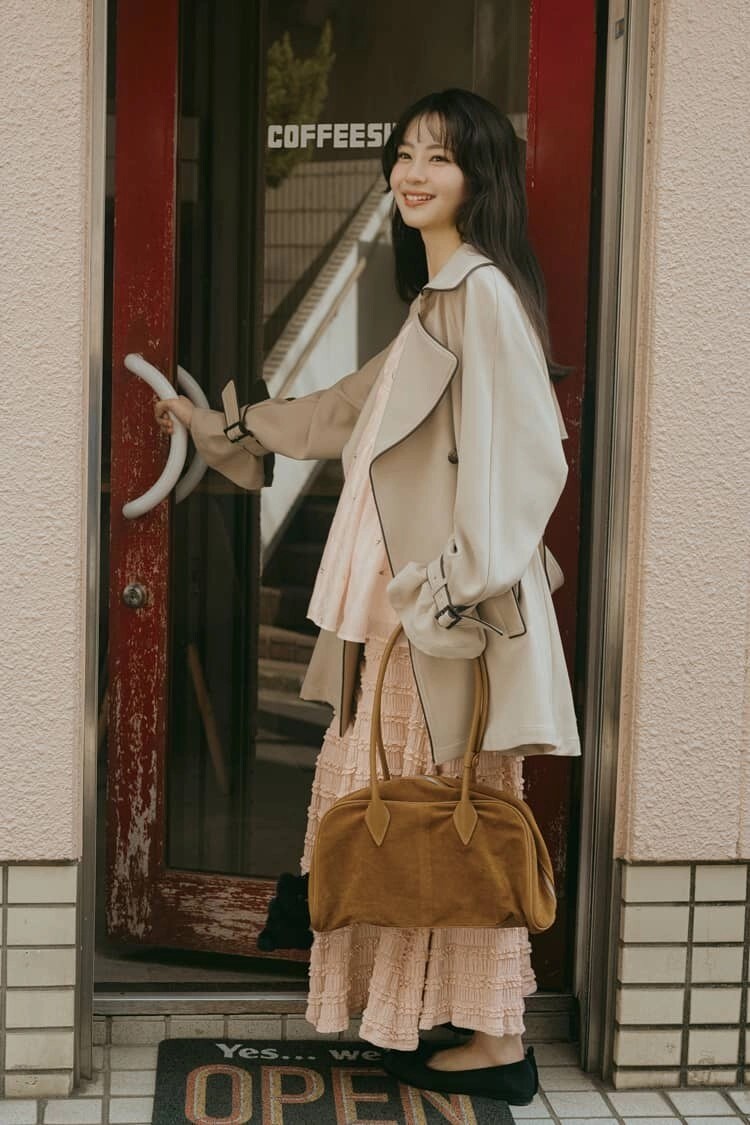 ピンク×ベージュで柔らかい印象をゲット。キレイめスタイルで男女モテを狙っちゃおう♡