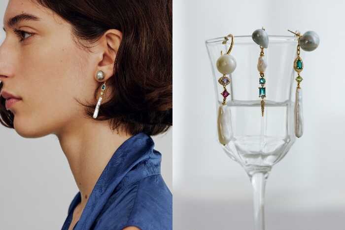 価格はピアスが44,000円、イヤークリップが39,600円。1粒ごとに異なる有機的なパールの表情と天然石の煌めきが織りなす、まさに“一点もの”のジュエリーです。