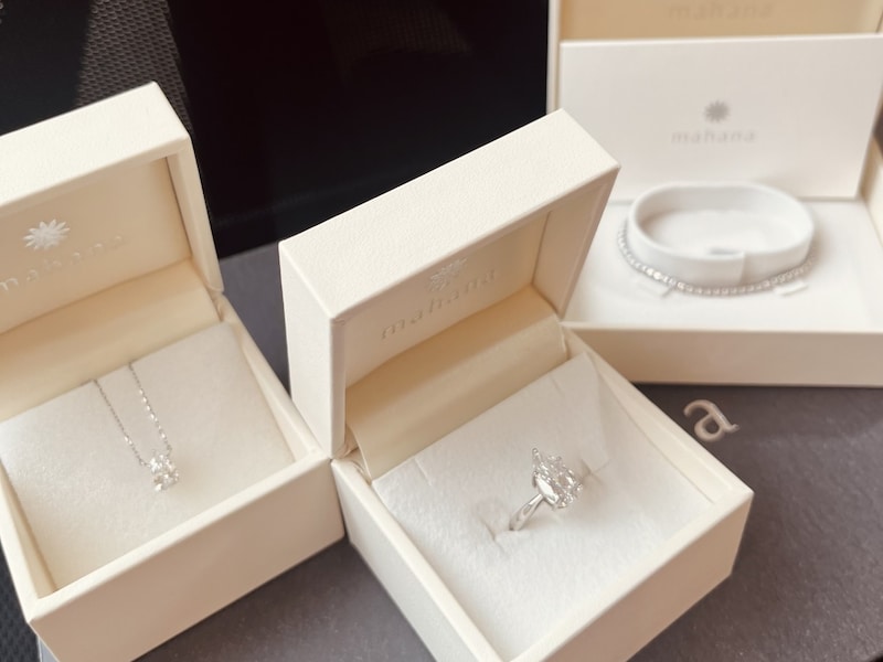 ちなみに私は、ラボグロウンダイヤモンド専門ブランド「mahana」でオーダーしました。天然ではとても作れない、3カラットのリングや1カラットのネックレス、トータル2カラットのテニスブレスレットを購入。清水買いでしたが、毎日のようにつけて楽しめるので、一生ものとしてコスパ最高!だと思っています(笑)。
