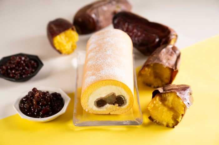 博多では熊本名物を取り入れた「いきなり団子ロール」(2,268円・博多阪急店限定)が味わえます。