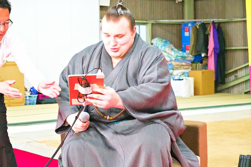 さらに対談後には、現地イングランドのサッカーリーグ「ブライトン・アンド・ホーヴ・アルビオン FC」所属の三笘薫選手から、安青錦関への「ご活躍をお祈りしています。お互いに頑張りましょう」というメッセージ動画とサイン付きユニフォームを、安青錦さんにサプライズプレゼント! 「めっちゃ嬉しいです! あの……メッセージ動画も送ってほしいです(笑)」と満面の笑みで喜んでいました。