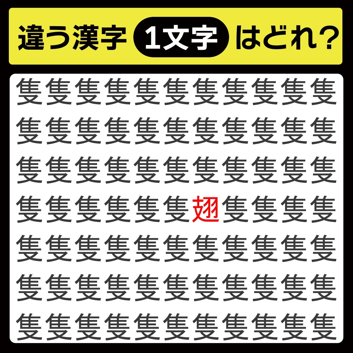 違う漢字は、上から4行目、右から5番目の文字でした!