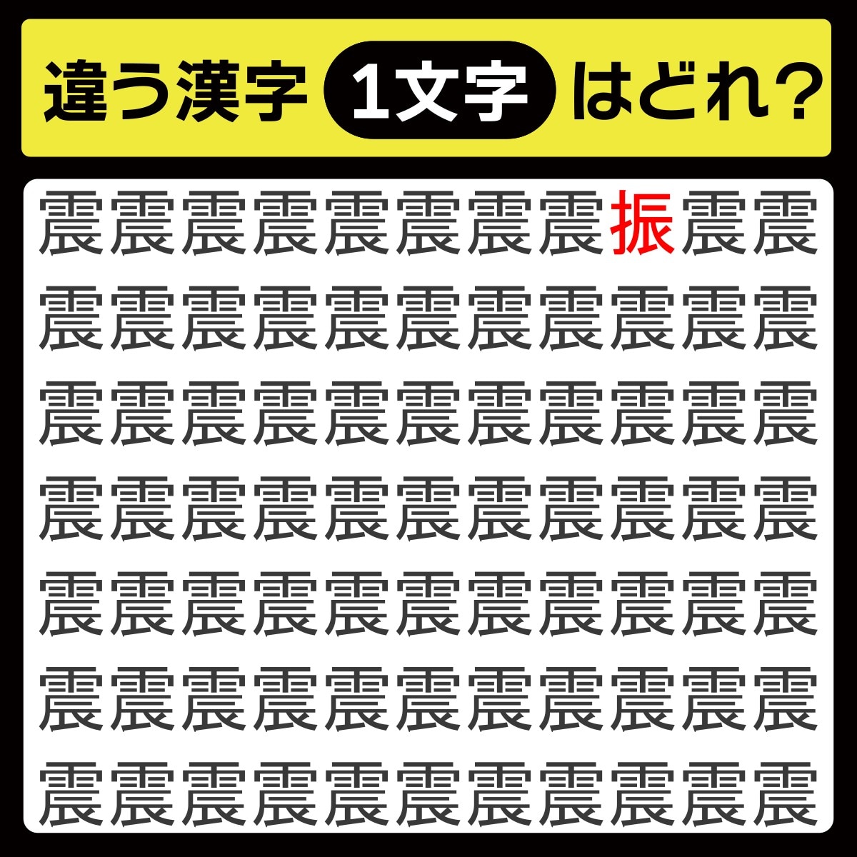 毎日配信中「毎日脳トレ」の時間です! 本日のクイズは「漢字のまちがい探し」に挑戦♪ 同じ漢字が並んでいるように見えますが、実は1つだけ違う漢字が……。よ~く探してみてください!