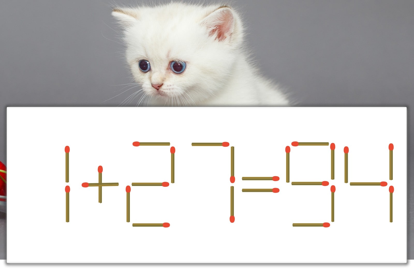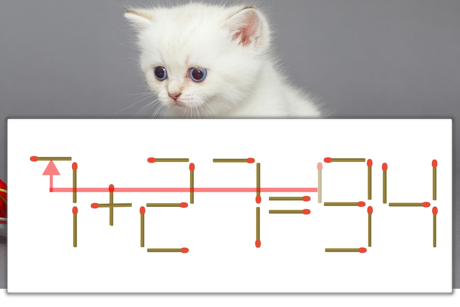 「9」を別の数字に変化させると答えが導き出せます。「9」のマッチ棒を1本移動して、「1」を「7」にしてみましょう。すると、「7+27=34」が成立します。