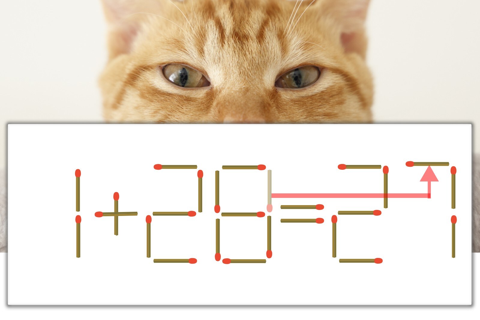 「8」を別の数字に変化させると答えが導き出せます。「8」のマッチ棒を1本移動して、「1」を「7」にしてみましょう。すると、「1+26=27」が成立します。