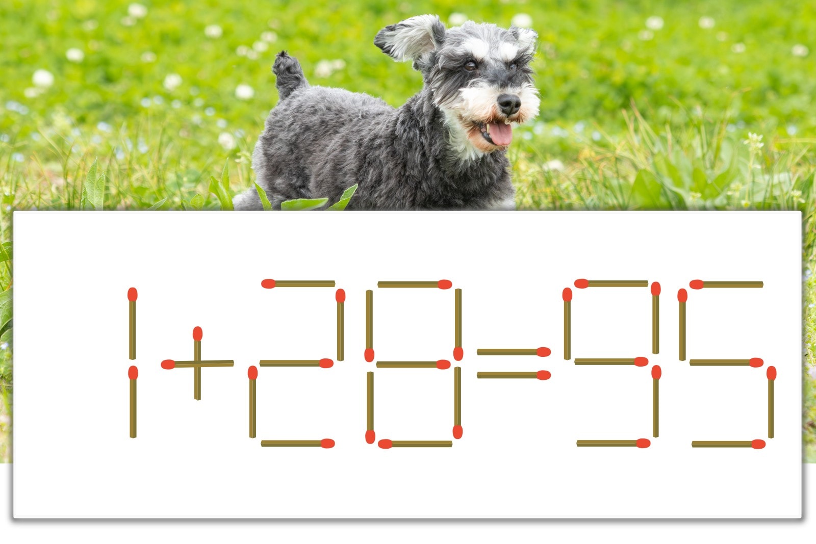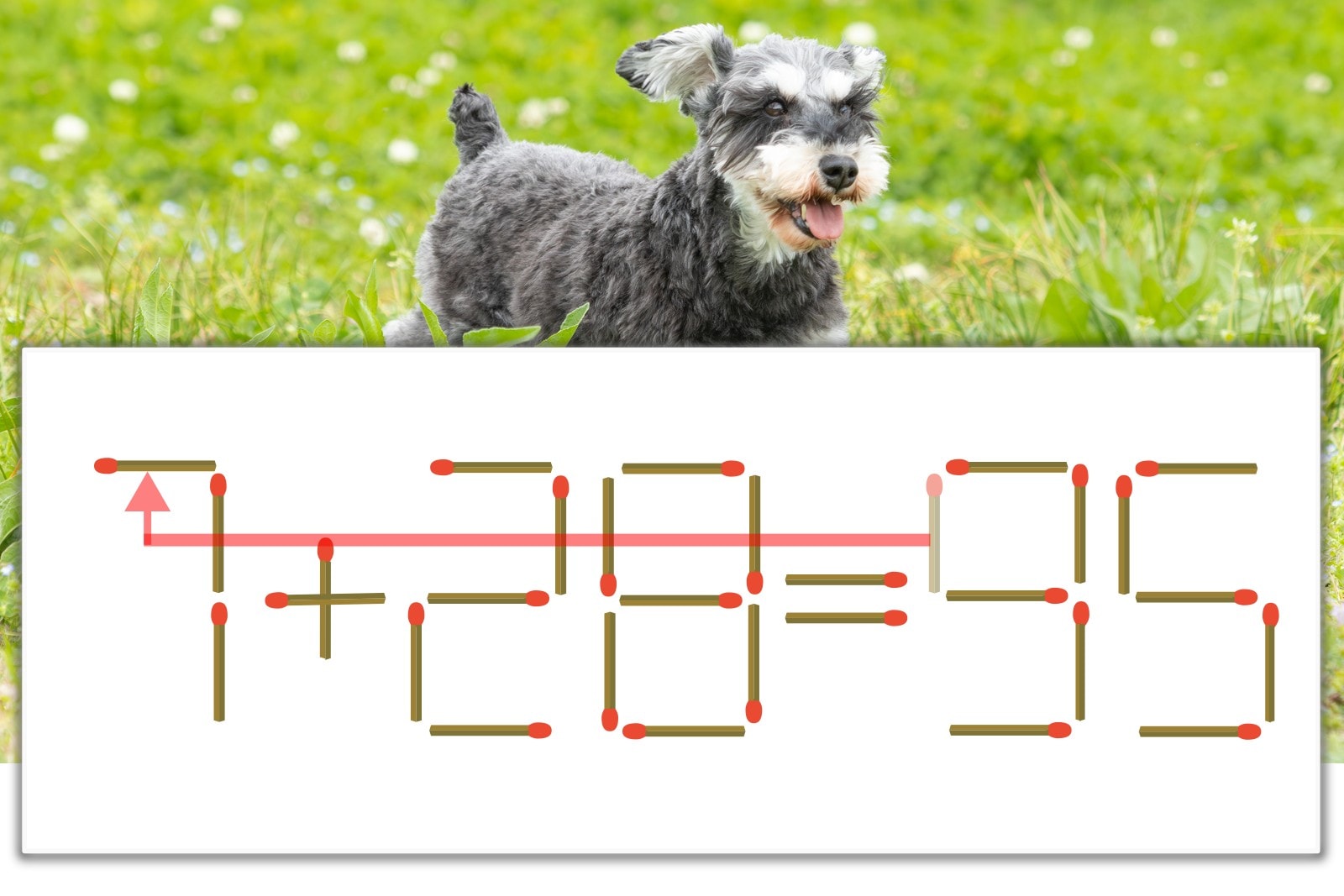 「9」を別の数字に変化させると答えが導き出せます。「9」のマッチ棒を1本移動して、「1」を「7」にしてみましょう。すると、「7+28=35」が成立します。