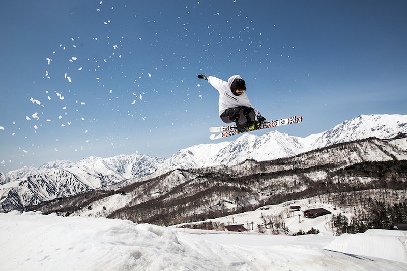 トップ部は標高1,500mを越えて北向き斜面が多いため、春でも融雪もゆるやかなHakuba47。3月下旬で山頂には300㎝、ベースでも150㎝近い雪がある。スプリングシーズンもコンディションは上々で、5月GWまで営業予定だ。名物の『47PARKS』は、13m~3mの様々なサイズのジャンプに、ハーフパイプ、初・中・上級とステップアップしやすいバラエティなJIBアイテムが揃うクオリティの高いパーク。春は雪が柔らかいことでソフトランディングができるため、ジャンプも練習しやすい。パークライドがうまくなりたい人には絶好の環境だ。