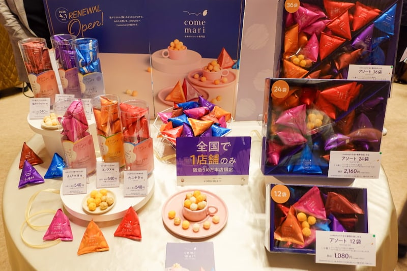 オープン3周年を迎え、4月1日(水)にブランドをリニューアル。国産うるち米を100%使用したサクサク食感と食べやすい小粒サイズで、おいしさがパワーアップ。ポップなデザインの新パッケージも、心が弾みます。