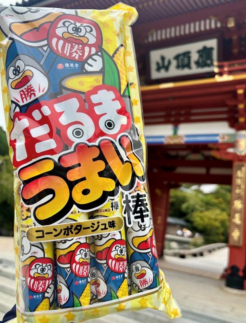 大人気の「コーンポタージュ味」だから、味は間違いなし! 縁起のいい「勝尾寺」で他にはない特別デザインの「うまい棒」をゲットしましょう。