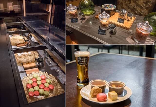 ティータイムには、マカロンやミニケーキ、ナッツ類などを用意。ビールは「アサヒ生ビール マルエフ」と「サントリー 東京クラフト」の2種類をそろえます。それぞれのラウンジに用意されるケーキやスイーツも違うので、全て巡ってみたくなります。