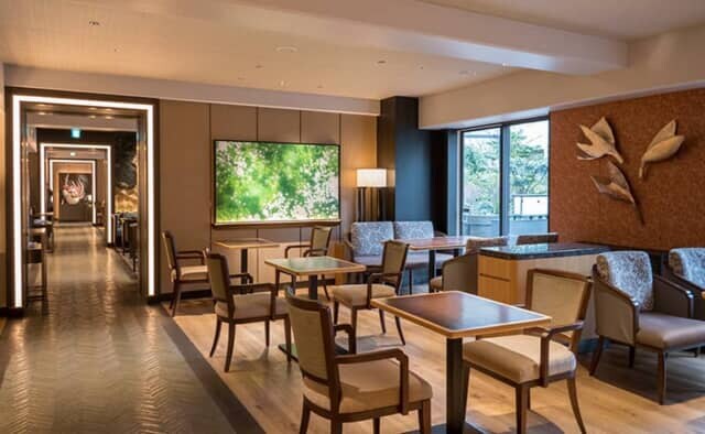 それぞれ雰囲気や家具調度の異なる小部屋が連なるグランドプリンスホテル新高輪の「クラブラウンジ」。窓の外にはテラス席もありました。日中は大きな窓から自然光が入り、夜になると控え目に灯る照明で落ち着いた雰囲気を演出しています。