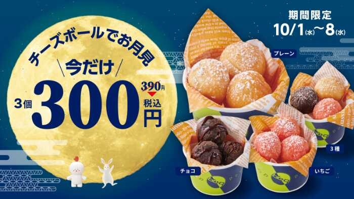 価格は通常390円(税込)のところ、期間中は各種300円(税込)でお得に楽しめます。お食事後のデザートにはもちろん、お月見団子に見立てて秋の夜長を過ごすのもおすすめ。