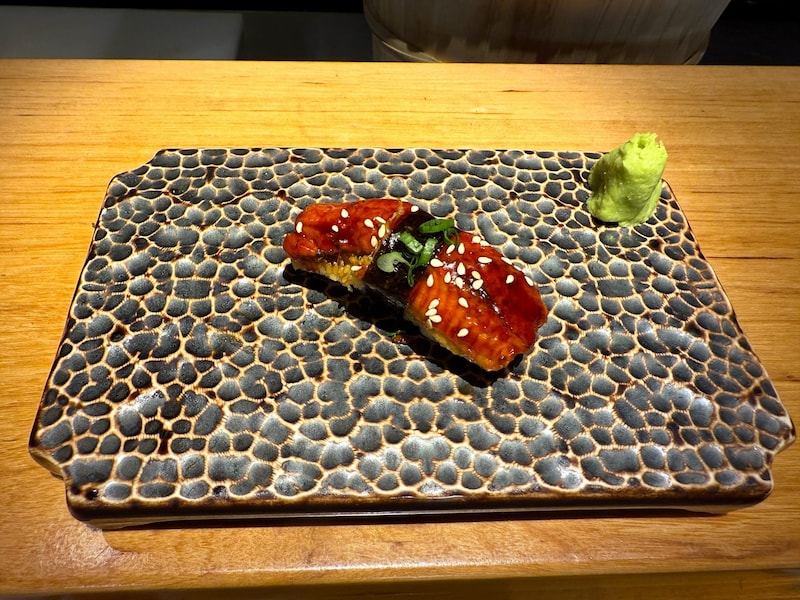 <写真:ソースも良く合ってウナギのお寿司というのもアリだな、と感じさせられました>
