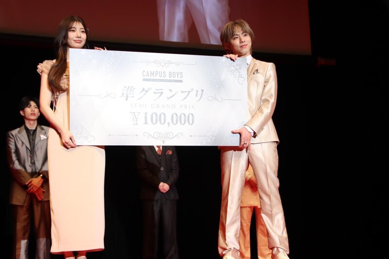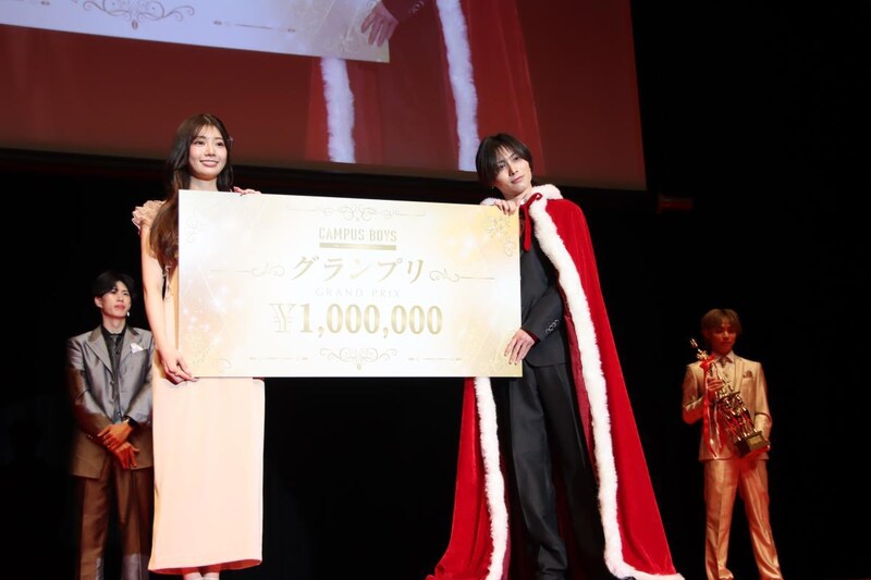 グランプリに選ばれた原田さんには、ガウンとトロフィー、副賞として賞金100万円や雑誌「FINE BOYS」での単独見開き一面掲載特典などが贈られました。