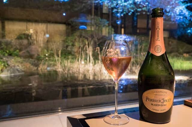 春を思わせるサーモンピンクのシャンパンはペリエ ジュエ社の「ブラゾン ロゼ」。芳醇な香りにシュワっと繊細な泡立ちが心地よく、コクのある味わいの後にキレのいい余韻が残ります。