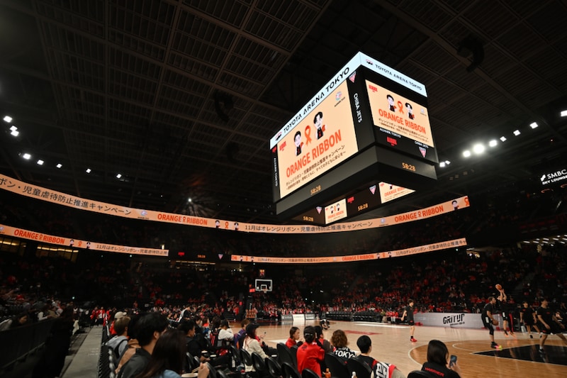 2025年10月に東京・お台場エリアの青海に完成したばかりの「TOYOTA ARENA TOKYO」が、同年11月、オレンジ色に染まった。これは同施設をホームアリーナとするプロバスケットボールクラブ・アルバルク東京が行った「オレンジリボン活動」の演出の一環。昨年で5回目となったこの取り組みにかける、アルバルク東京の思いを聞いた。