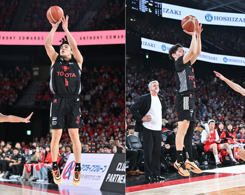 オレンジ色のバッシュを履いてプレーする#9安藤周人選手(左)、#25福澤晃平選手(右)また、11月1日、2日、16日のホームゲームでは会場内のALVARK Willブースにてオレンジリボンと里親制度に関するクイズを実施。参加者にはオリジナルステッカーやオレンジリボンなどがプレゼントされた。クイズに全問正解すると、活動の中心になっている#9安藤周人選手、#25福澤晃平選手のサイン入りオレンジバッシュや、オリジナルトートバックが当たる抽選に参加できるとあって、多くのファンが参加した。
