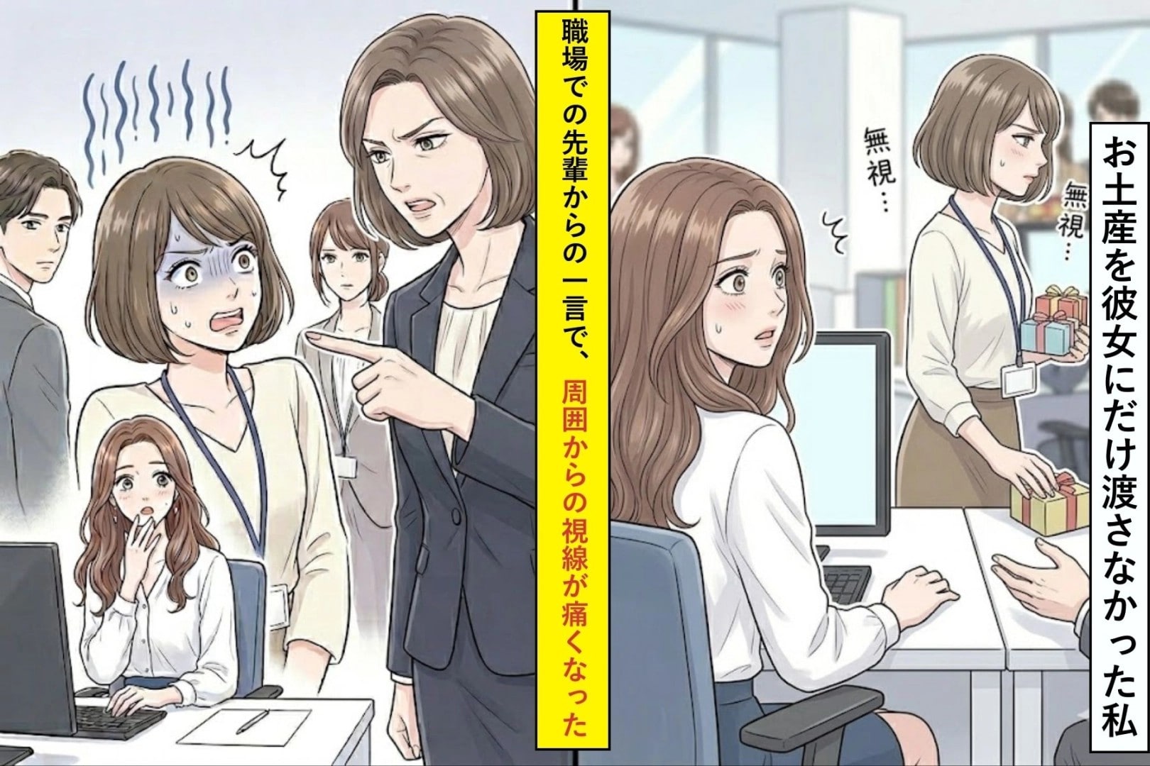 お土産を彼女にだけ渡さなかった私。職場での先輩からの一言で、周囲からの視線が痛くなった