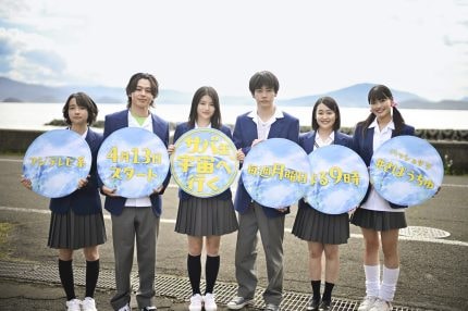 会見には、出口夏希や黒崎煌代ら生徒役のキャスト6人も、ロケ地の福井県小浜市から中継で参加した。
