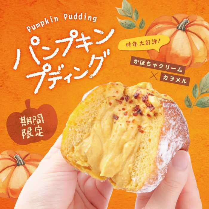 昨年大好評だった「パンプキンプディング」(税込380円)が今年も帰ってきます。濃厚なかぼちゃクリームとほろ苦いカラメルが織りなす味わいは、まるでかぼちゃプリンそのもの。