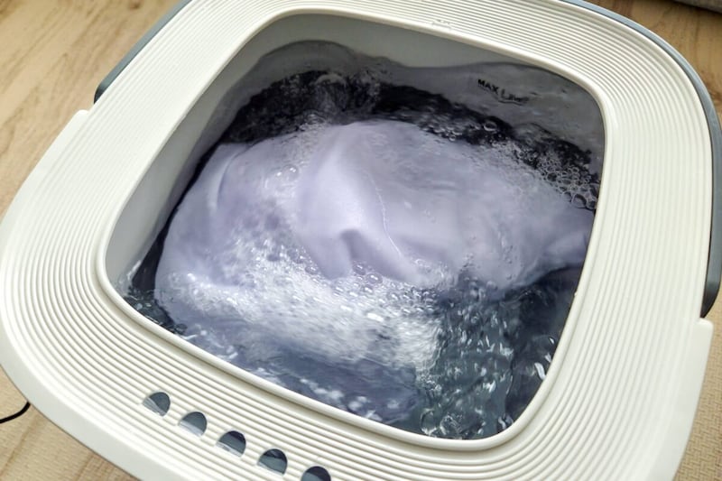 すると、ぐるぐると回ってシャツを洗濯してくれます。排水してもう一度水を入れてスイッチを押せば、すすぎをすることも可能。