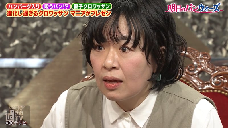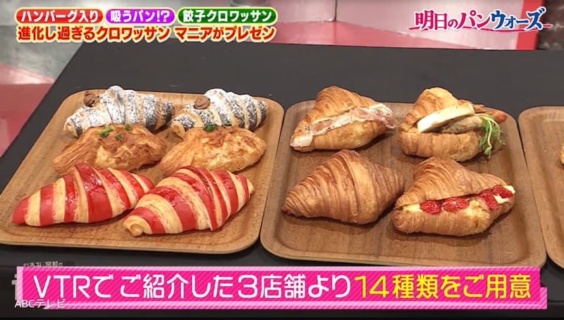 「トレンド過ぎるクロワッサン」というテーマでは、餃子風や、中に生クリームがたっぷり詰まったタイプ、チョコレートでコーティングされたものなど、14種類の絶品クロワッサンがスタジオに登場。岡村となるみは、その中から気になるクロワッサンを選んで試食することに。