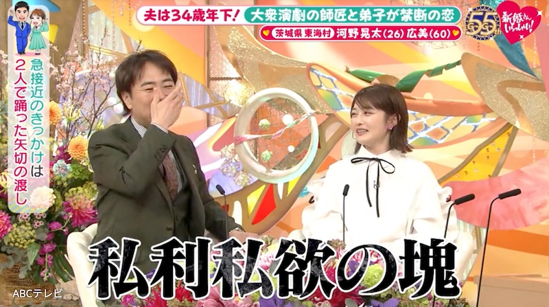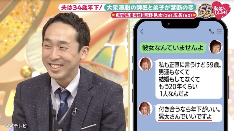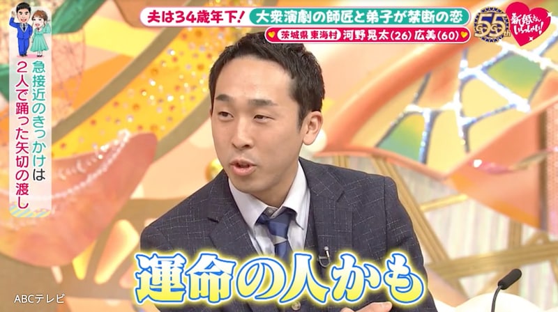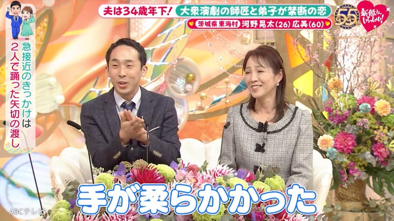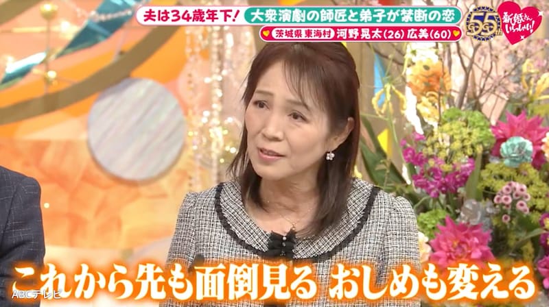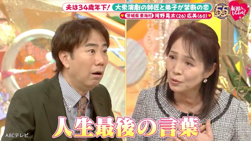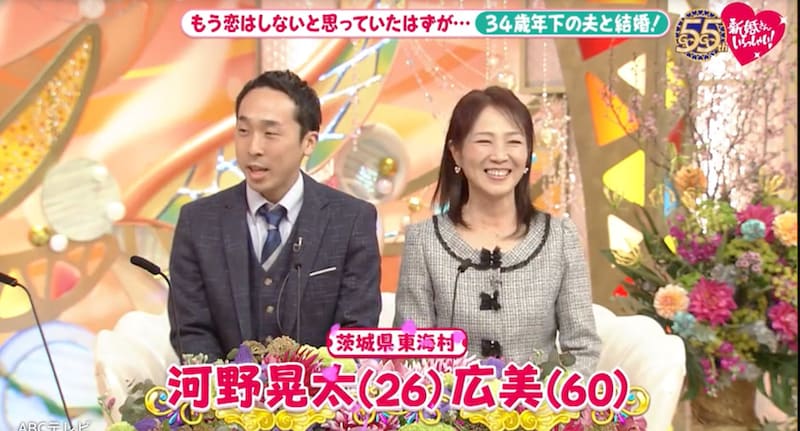 4月5日放送の『新婚さんいらっしゃい!』に、夫・26歳、妻・60歳という新婚さんが登場。茨城県東海村で34歳差の愛を育むカップルだ。