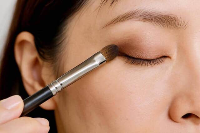 大人の正解は「斜め上に引き上げるように入れる」こと。目尻からこめかみに向かってブラウンやグレージュをぼかすと、視線が自然に上へ流れ、リフトアップ効果が生まれます。細めのラインやアイシャドウを重ねるだけでも印象は大きく変わります。