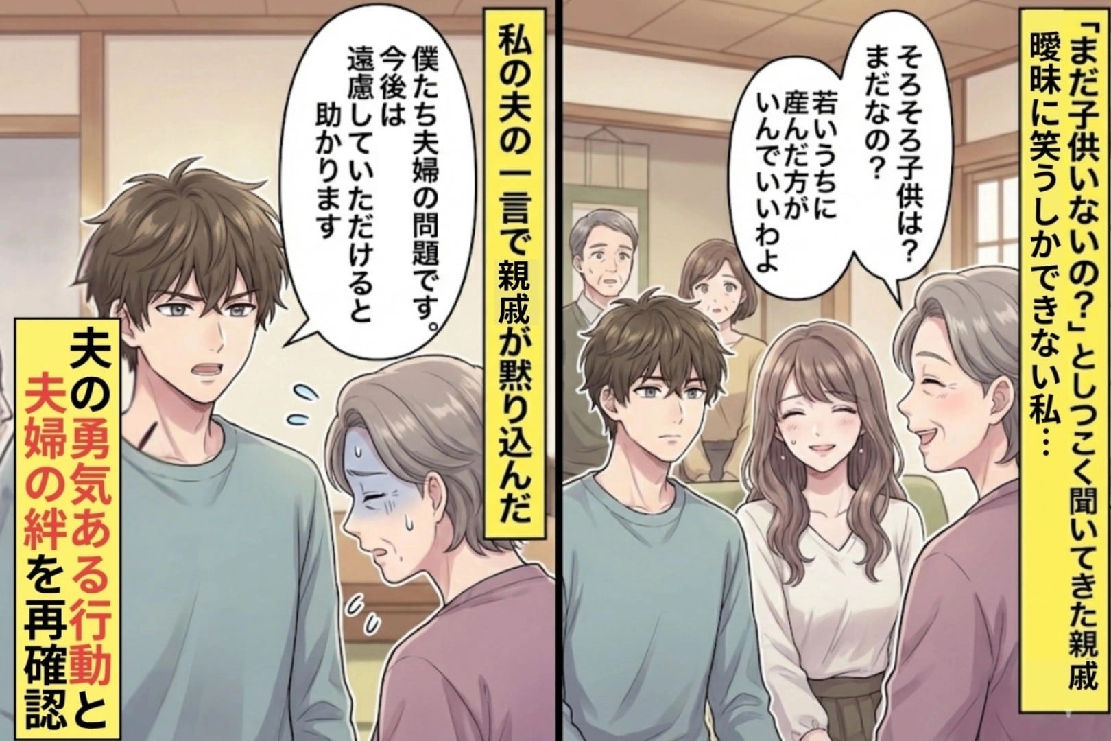 「まだ子供いないの?」としつこく聞いてきた親戚。私の夫の一言で一族が黙り込んだ
