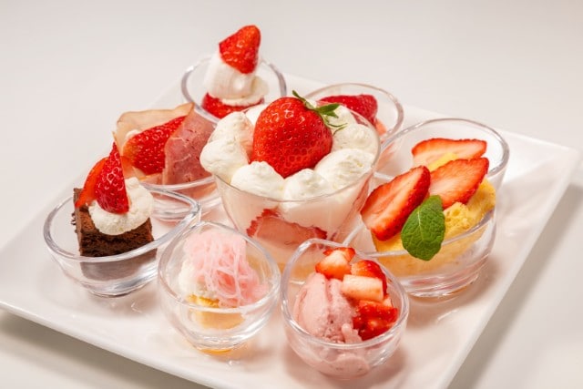 カフェで味わう春ざんまいメニュー施設内の「なごみCafe」では、定番からユニークなものまで、フレッシュないちごスイーツがラインナップ。写真でご紹介するので、食べ比べして楽しんで。